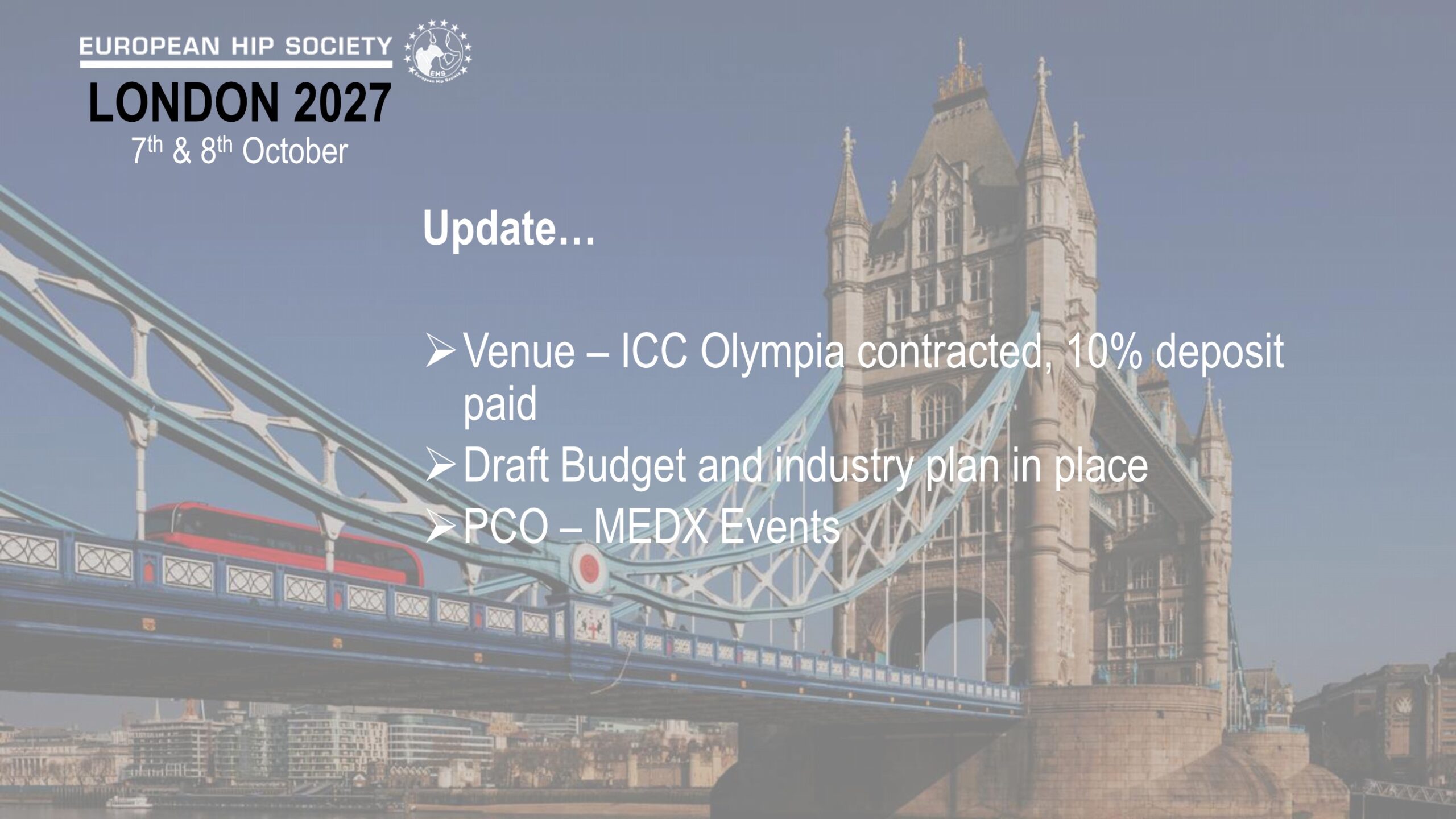 EHS will be involved again, with IOEN, EKS, The Hip Soc & The Knee Soc.
