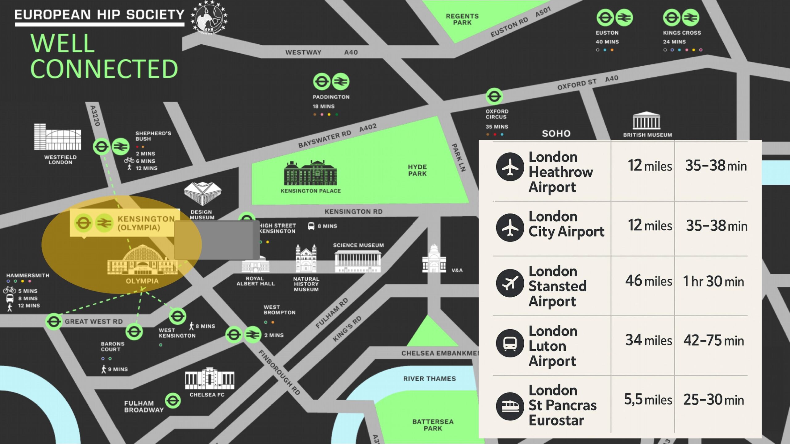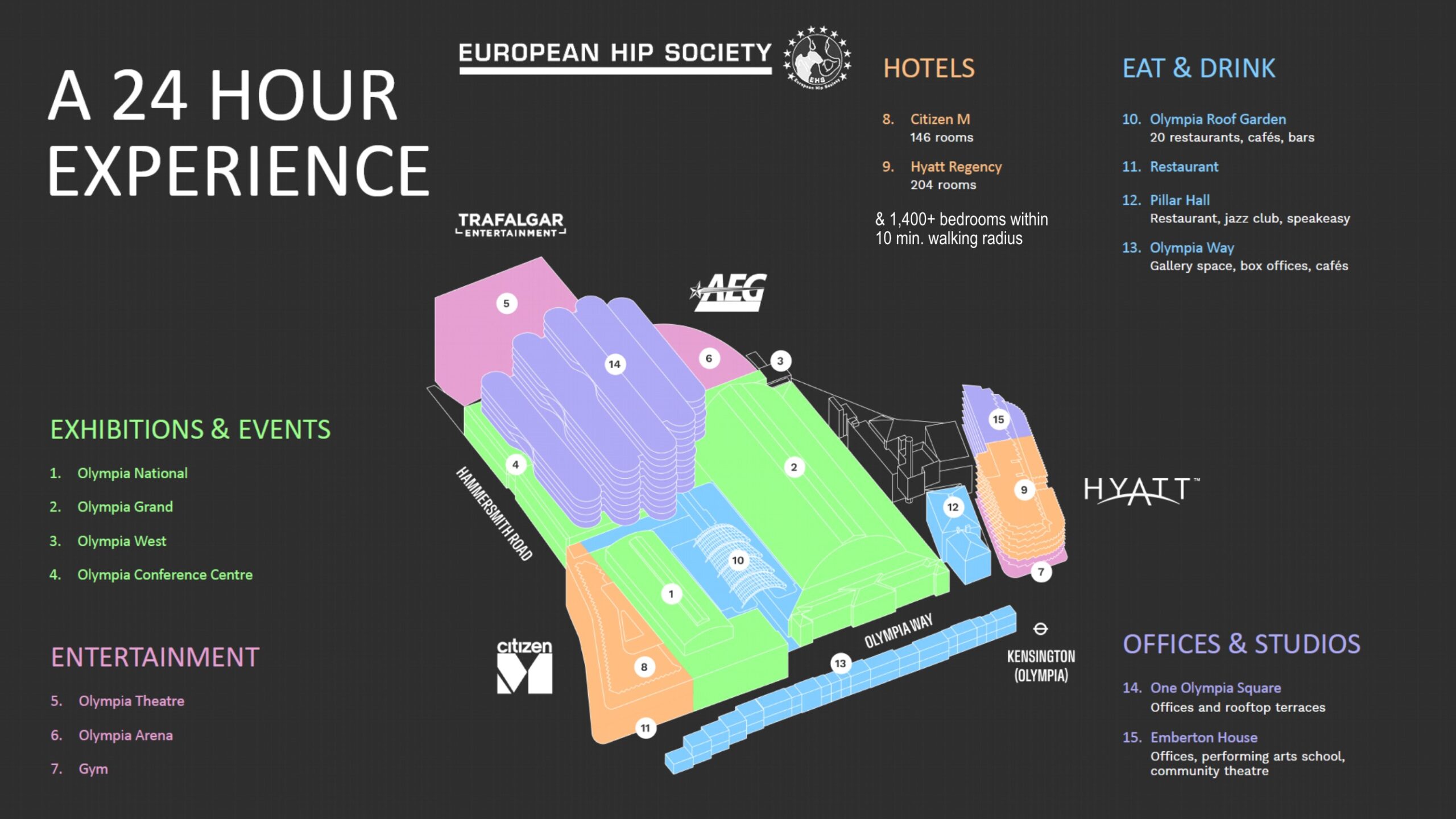 World class. Heart of London. Easily accessible. Nice hotels and restaurants nearby. EHS will have its own front door access to the venue.