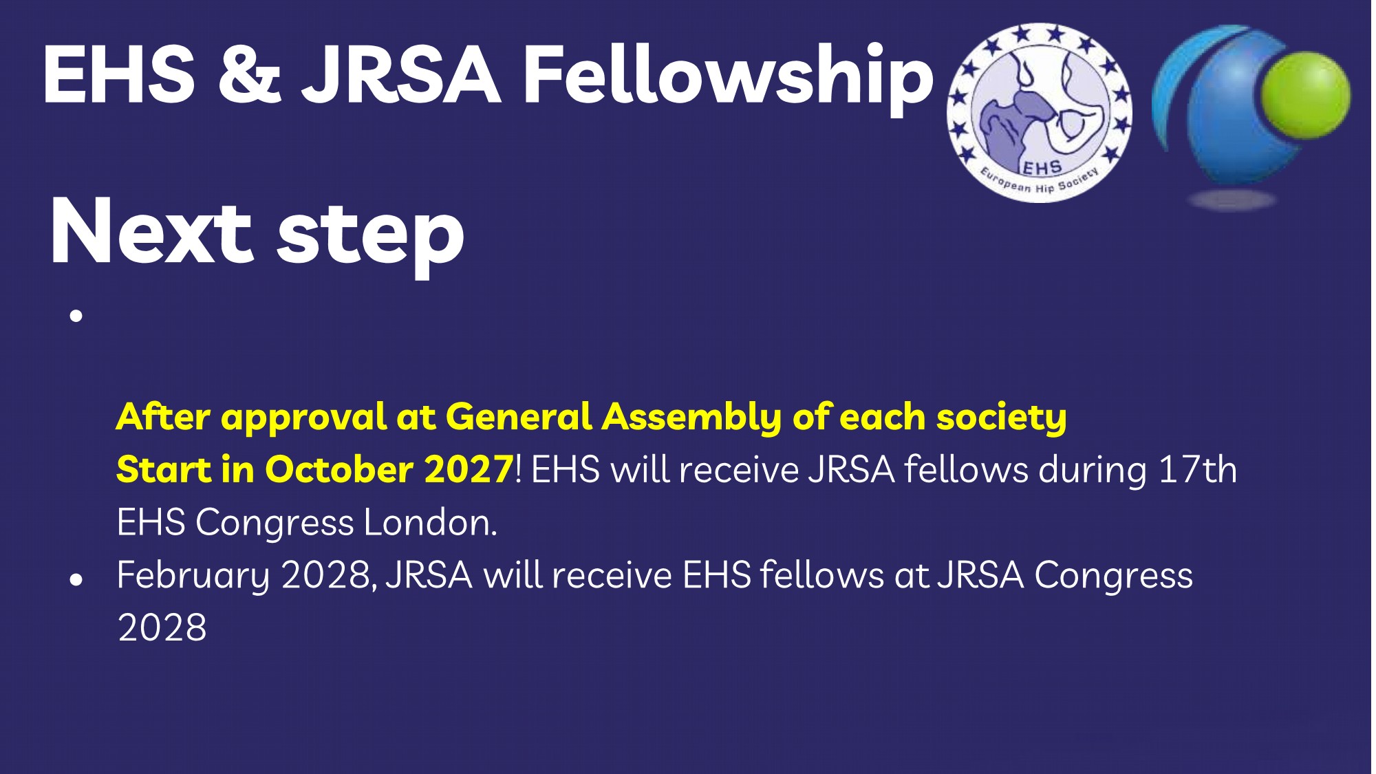 Approved with a raise of hands. Start in October 2027: EHS will receive JRSA fellows during 17th EHS Congress London.