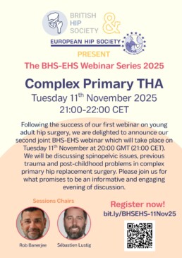 • BHS / EHS Webinar Series: Complex Primary THA (11th November 2025 @ 21:00 CET) Register HERE