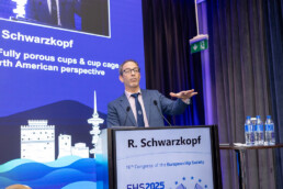 Prof R Schwarzkopf International EHS member from the US presented breakthroughs in the use of robotic technology for total hip arthroplasty. He demonstrated examples showing that robotic systems ensure more accurate positioning of hip implant components, significantly reducing the number of complications.